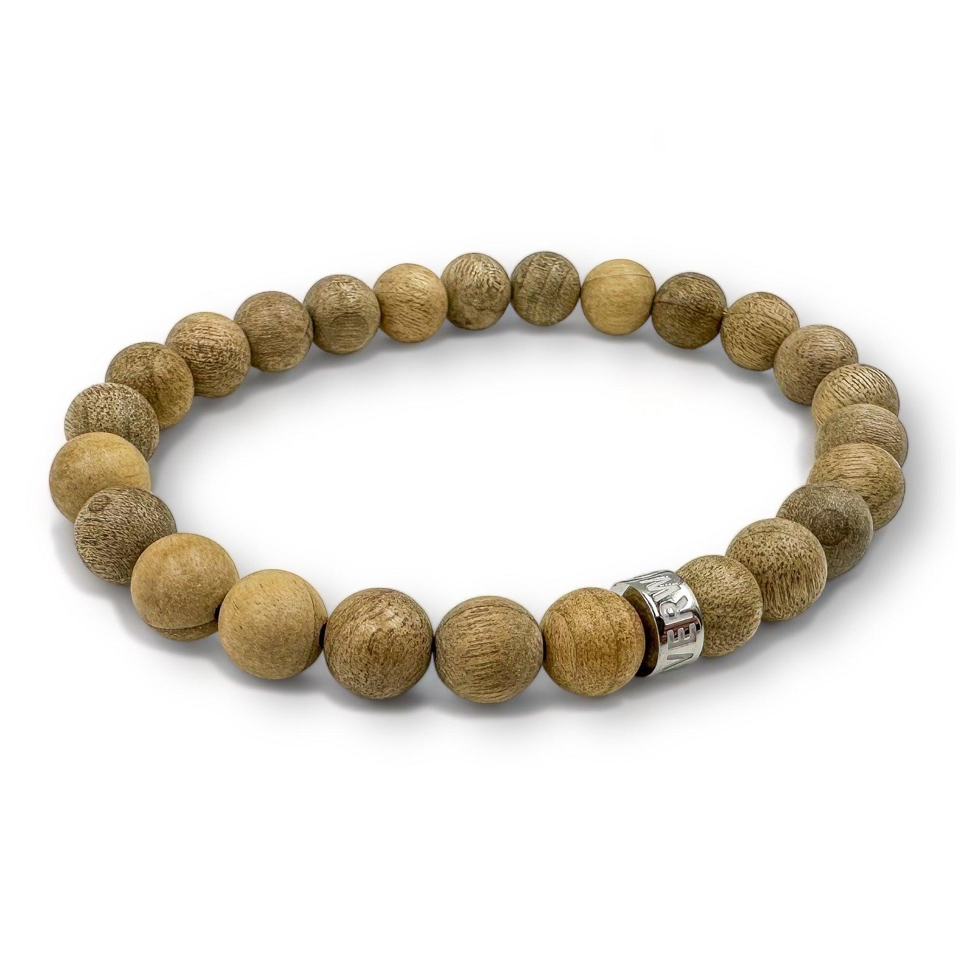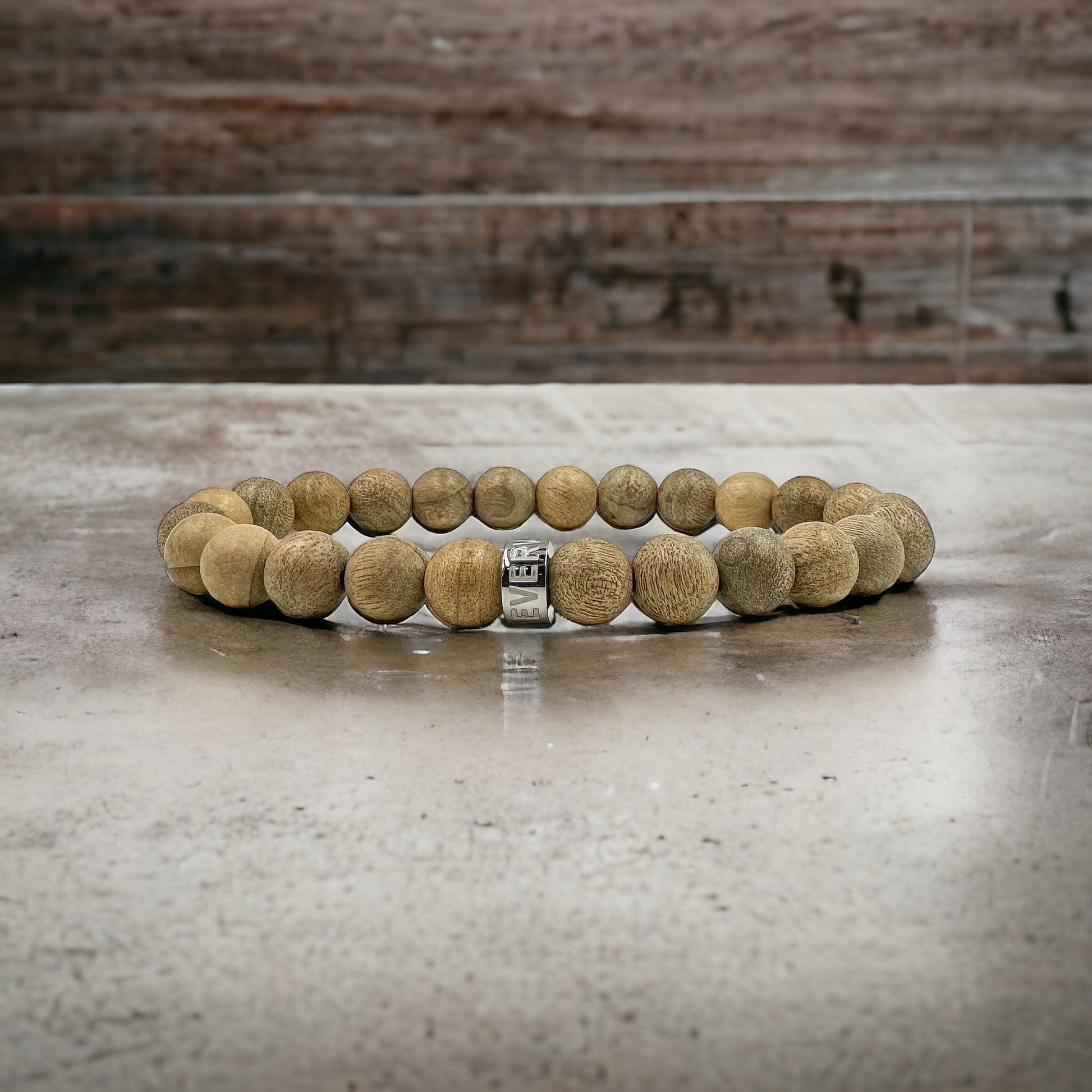 Ashbark brings the pale tones and swirling grain of Camphor wood into a design that feels straight from a weathered mountain trail. With its soft ash color and raw texture, this men’s bracelet captures the spirit of bark, bone, and open sky.