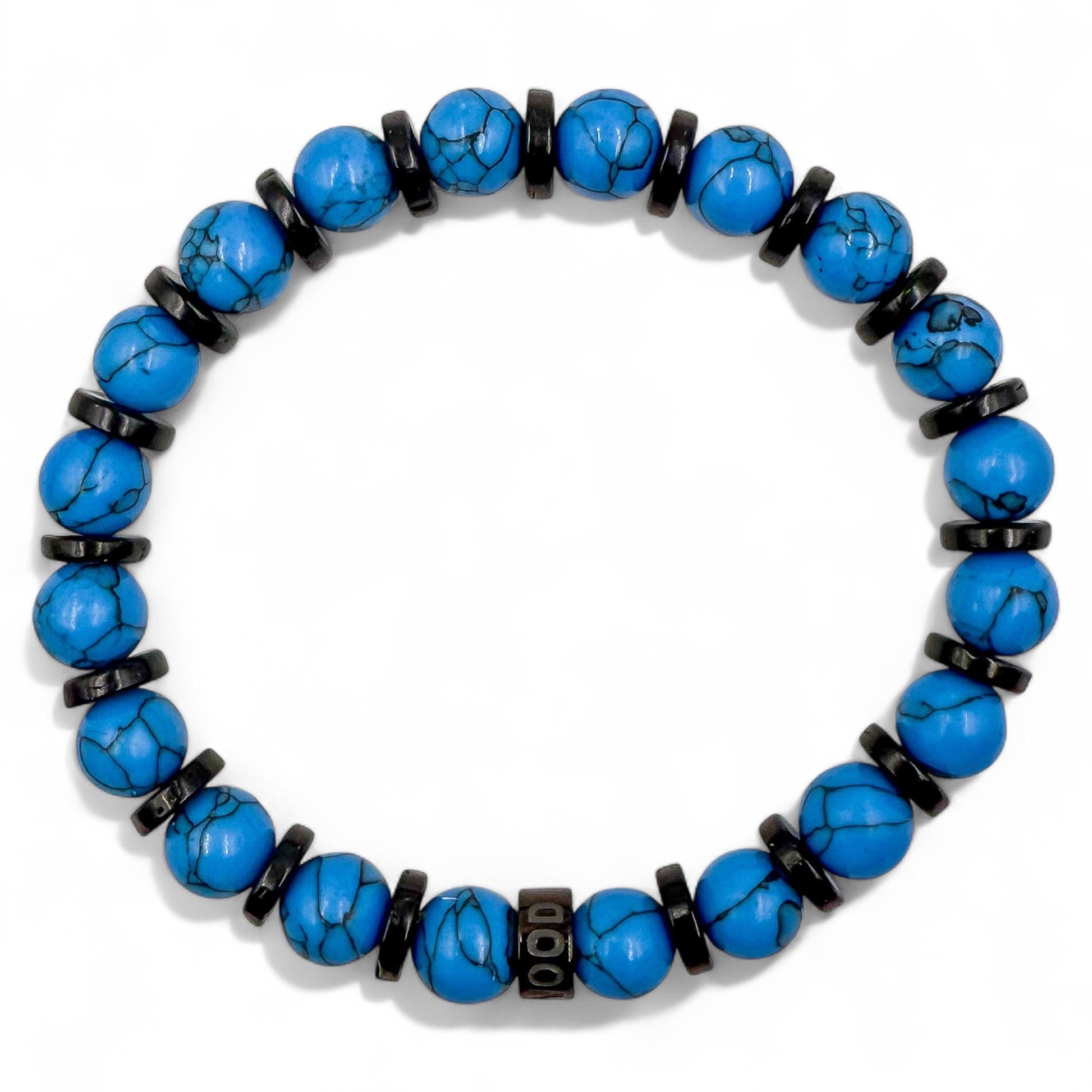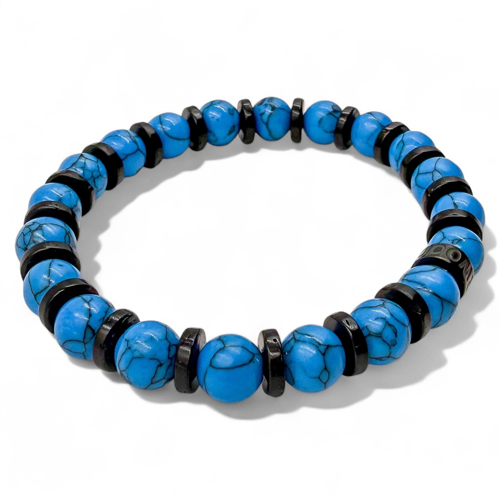 - Premium 8mm Blue Howlite and Blackwood Beads: Carefully selected for their distinctive texture and durability.