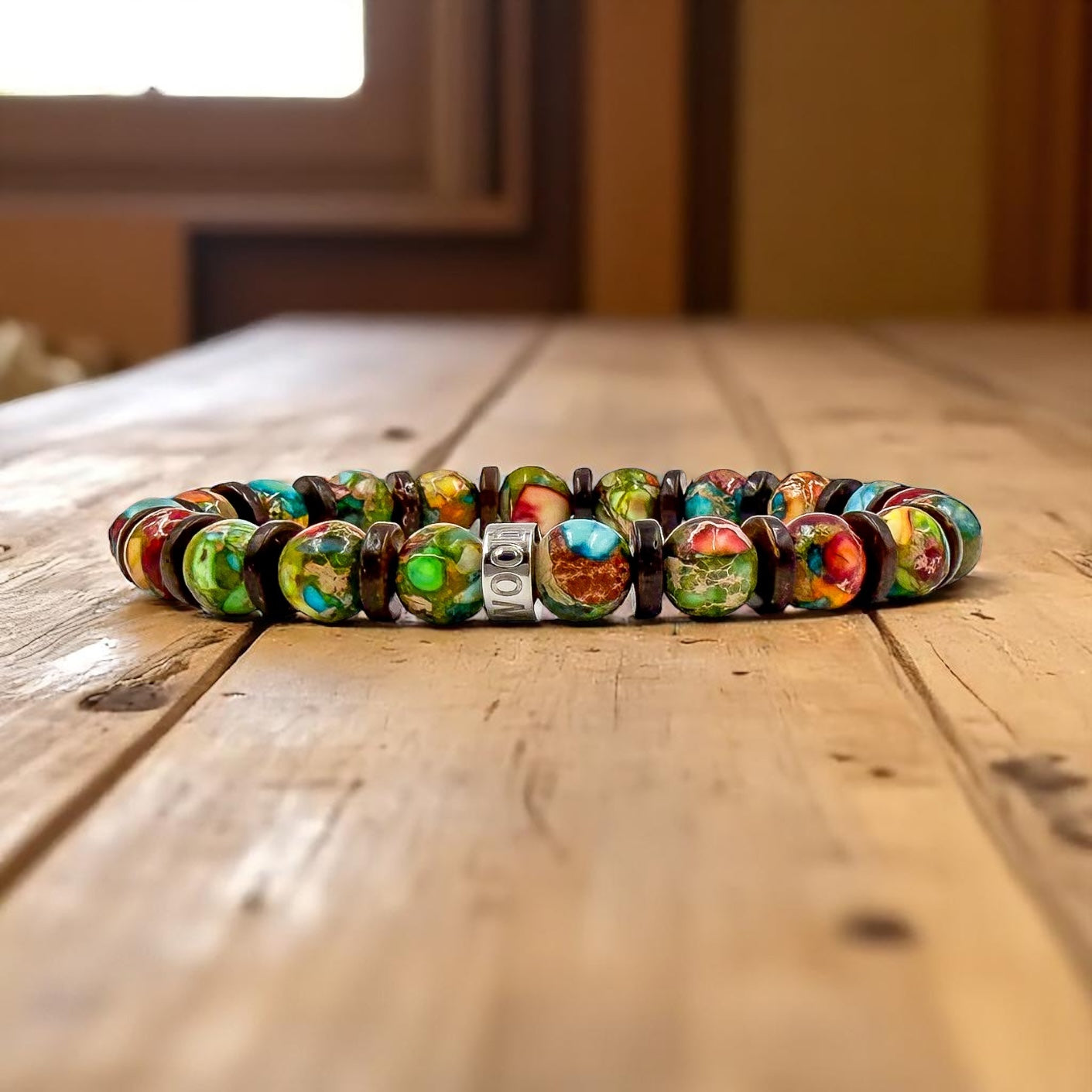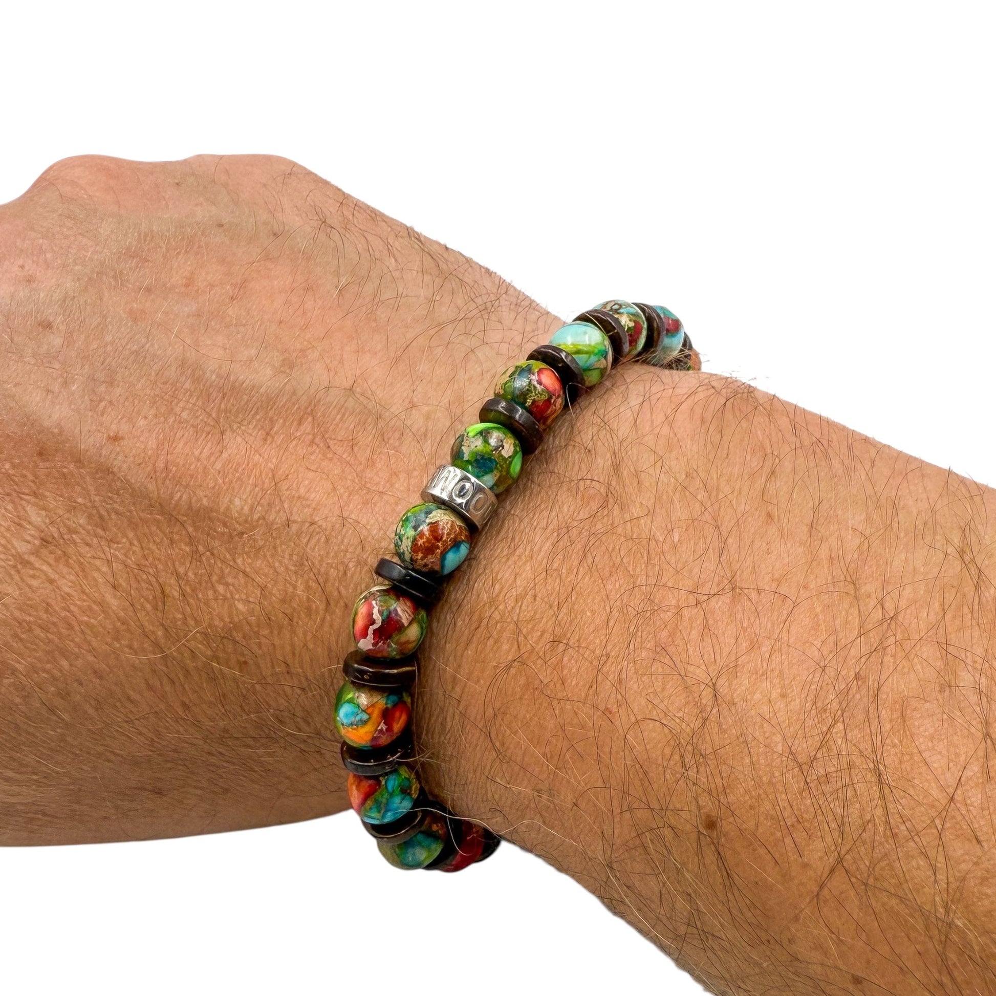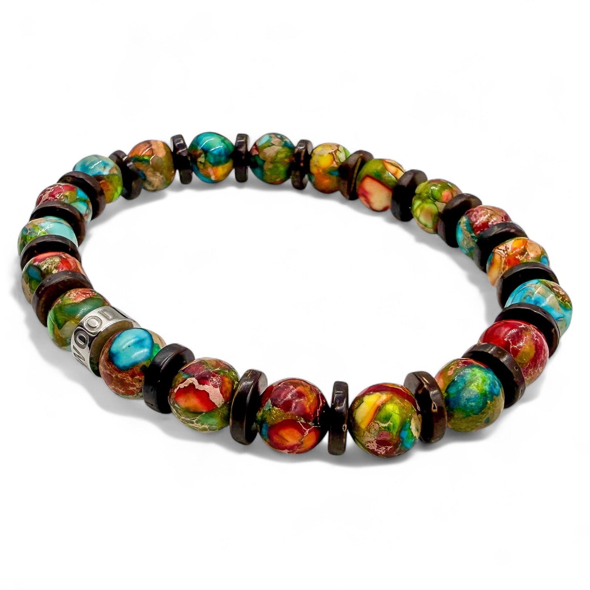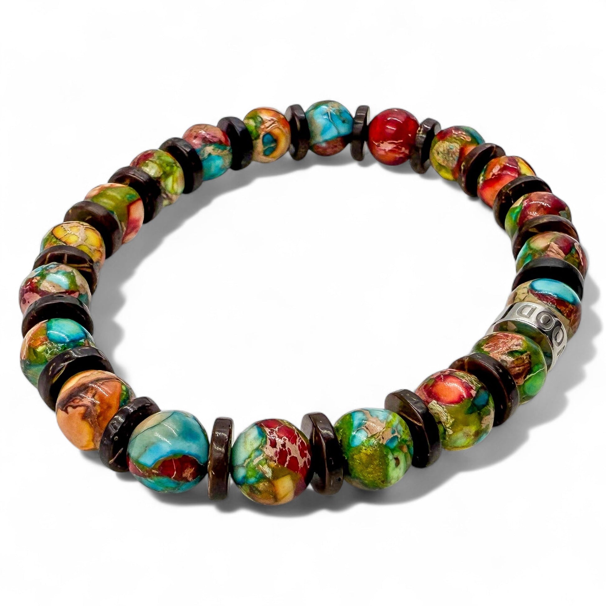 - Premium 8mm Rainbow Jasper and Brown Coconut Beads: Carefully selected for their distinctive texture and durability.