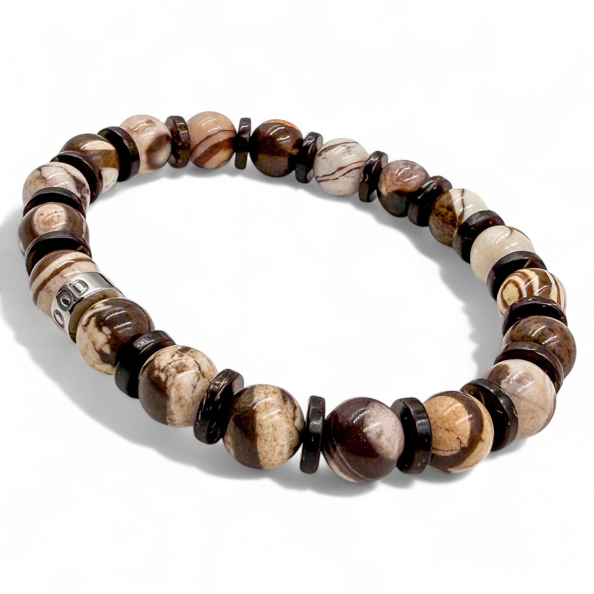 - Premium 8mm Brown Australian Jasper and Brown Coconut Beads: Naturally formed and carefully selected for their distinctive texture and durability.
